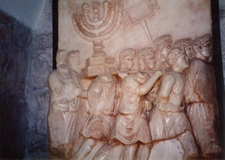 This marble statue shows Roman soldiers carrying a Jewish menorah back to Rome after the conquest of 70 AD.